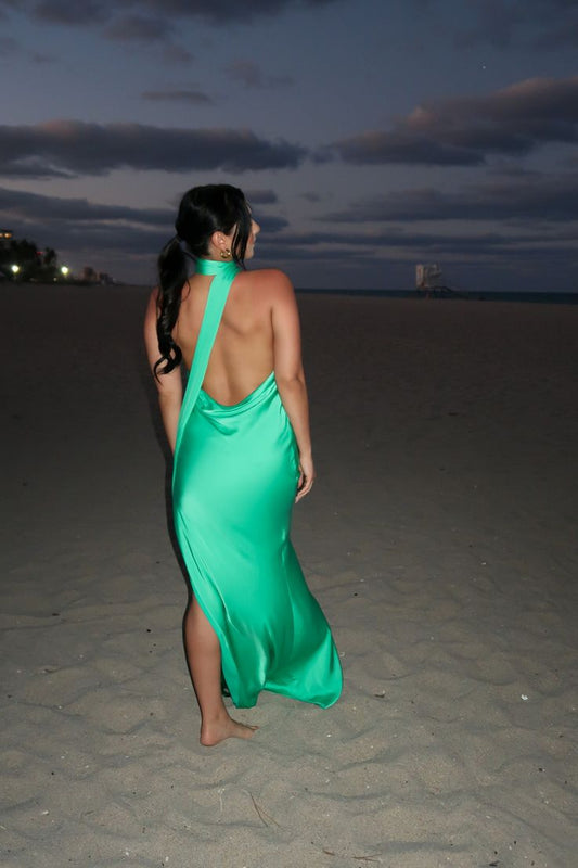 Green Gorgeous Vintage Exquisite Gem Beaded Long satin Mermaid Slim Floor Length Satin Ball Gown Evening Gown Party Dress nv3945