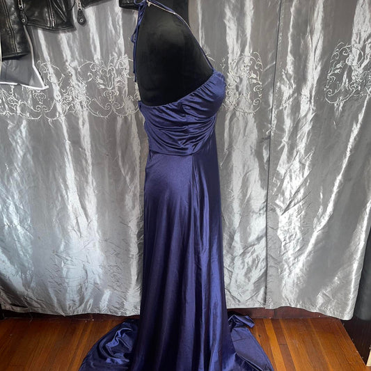 Blue Fashion Elegant Exquisite Beaded Strapless Long Satin Elegant Ball Gown Evening Gown Party Dress nv3680