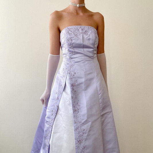 Purple gorgeous elegant delicate floral beaded long pleated satin tulle satin ball gown evening gown wedding dress nv3676