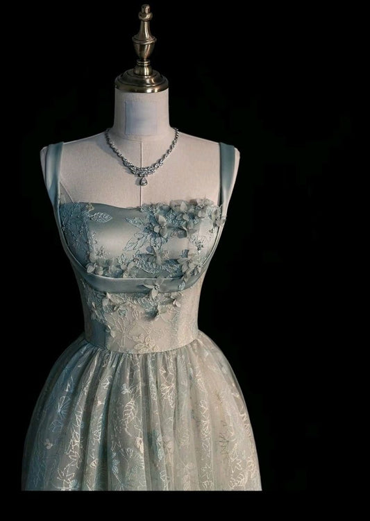 Sage Green Delicate Floral Beading Long Tulle Ball Gown Evening Gown Party Dress nv3485