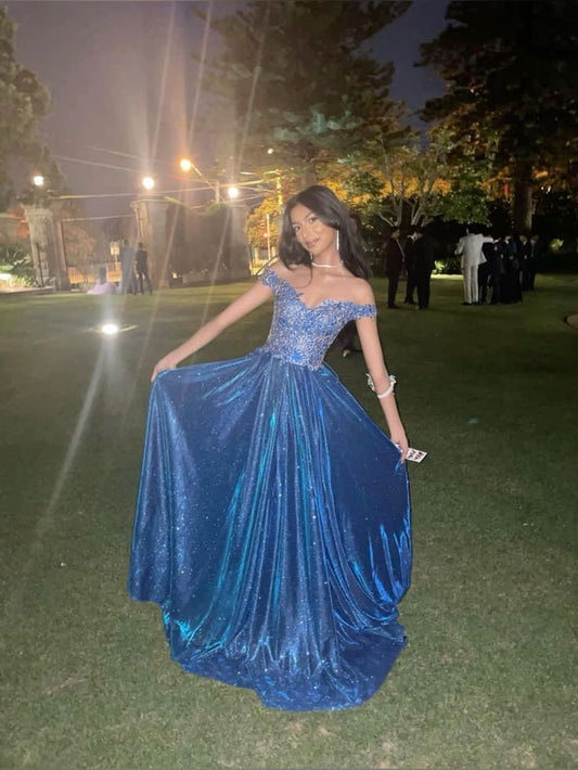 Blue Shiny Elegant A-line Long Sequined Ball Gown Evening Dress Party Dress Graduation Dress nv3488