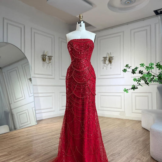 Burgundy Gorgeous Exquisite Beaded Lace Long Velvet Elegant Mermaid Slim Fishtail Skirt Ball Gown Evening Gown Party Dress nv3391