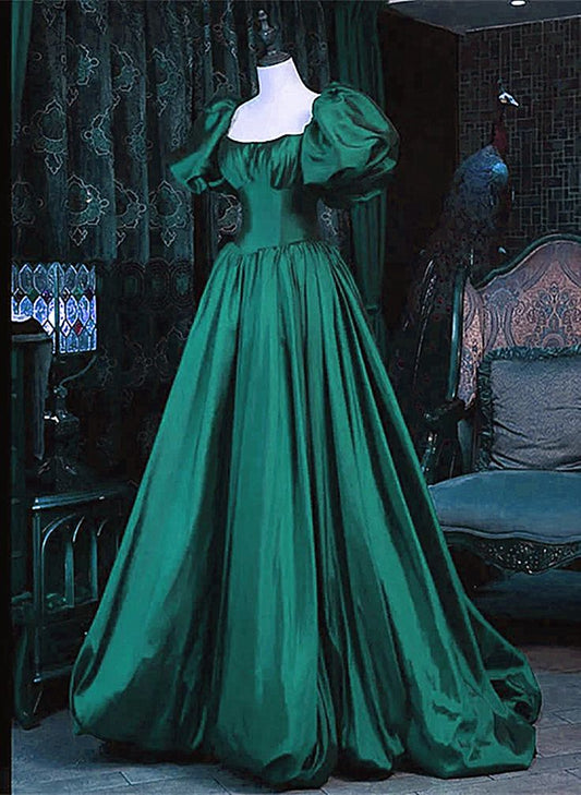 Burgundy/Green Simple Round Neck Short Sleeve Long Satin Elegant Banquet Dress Ball Gown Evening Dress nv3395