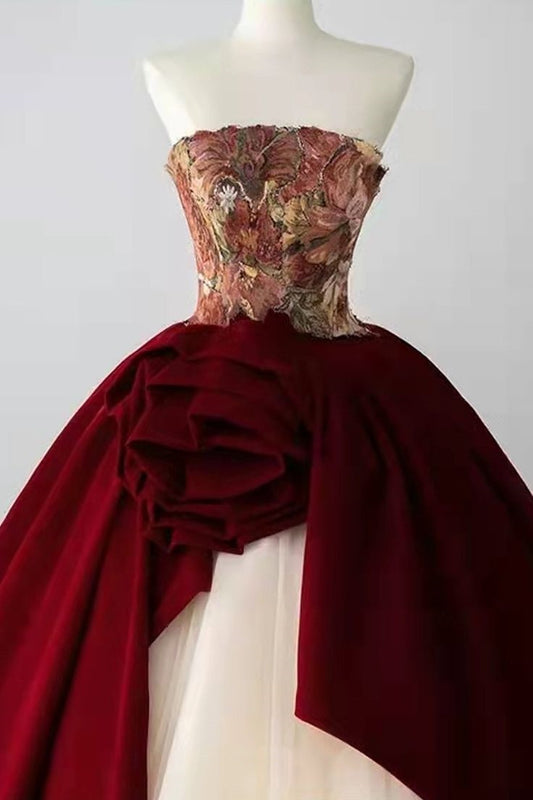 Red gorgeous exquisite floral tube top long ball gown evening dress nv3331