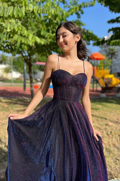 A-line sweetheart spaghetti strap glitter tulle long ball gown formal evening dress nv1759