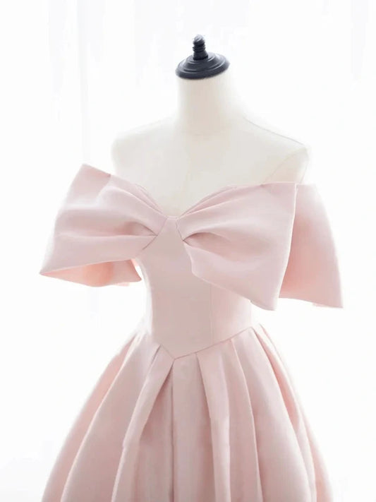 Decorated with a big bow on the front Cute pink satin short homecoming dress graduation dress nv1732