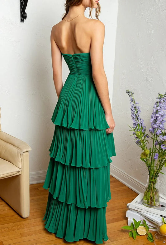 Emerald Green Strapless Multi-Layer Long Formal Dress nv1651