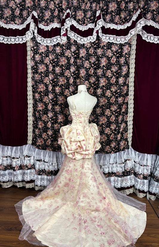 Pink floral elegant long tulle satin ball gown evening dress quinceanera dress nv4642