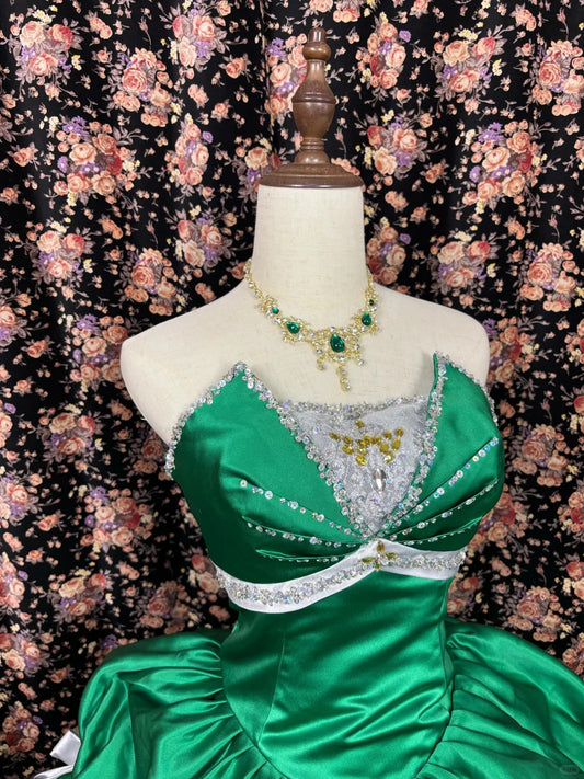 Green shiny beaded bow long satin ball gown evening dress quinceanera dress nv4645