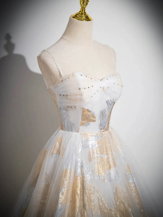 A-Line Tulle Layers Long Prom Dress, Ivory Spaghetti Strap Sweet 16 Dress Evening Dress nv1418