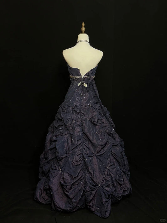 Sparkling dreamy starry purple night star river exquisite beaded satin floor-length retro long ball gown nv5149