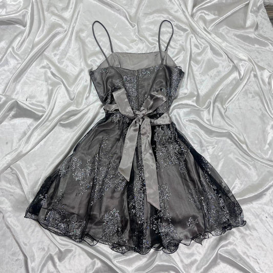 Short satin Y2K black glitter prom dress, homecoming dress, gothic dress, fairy dress, nv5371