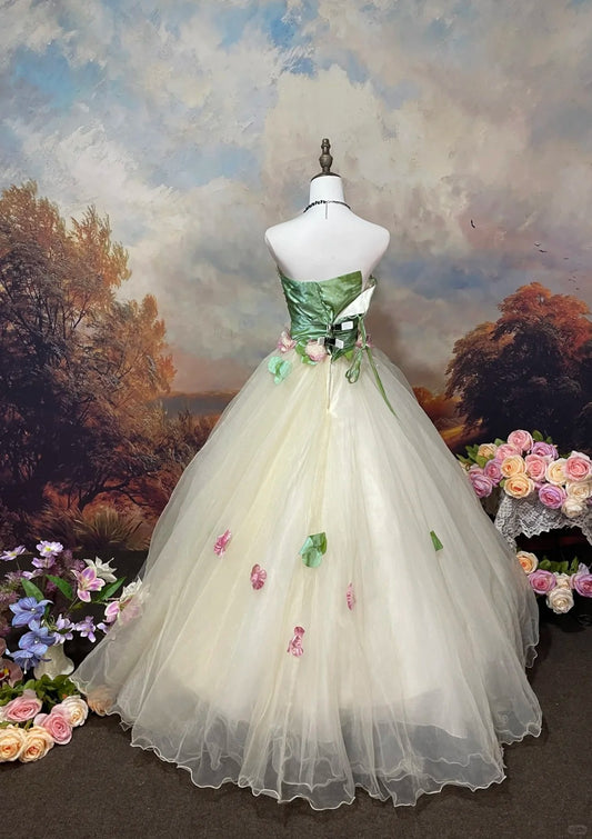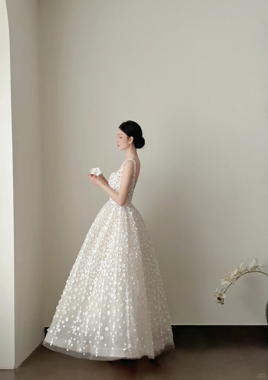 White Elegant Retro Fashion Romantic Exquisite Floral Long Floor Length Chiffon Tulle Ball Gown Evening Dress Birthday/Vacation/Wedding Dress Ball Gown Wedding Dress nv4076