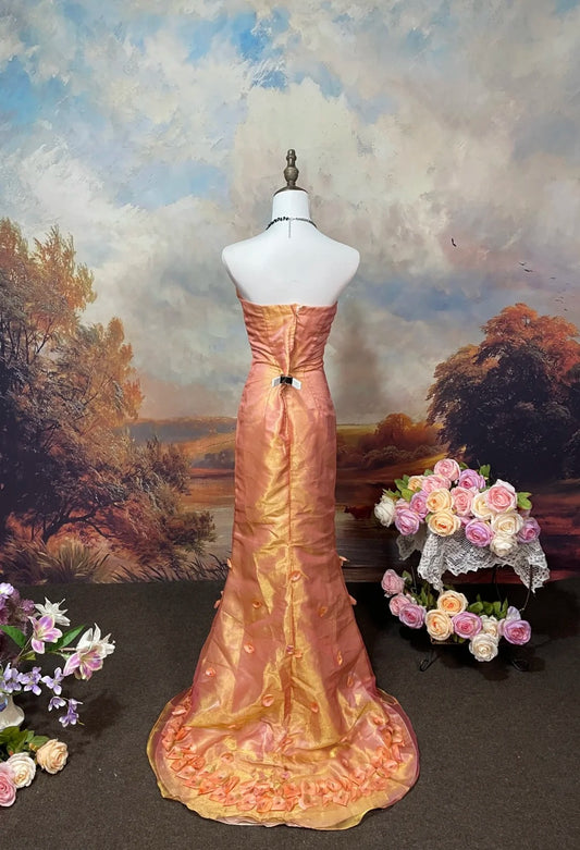 Orange Shiny Elegant Vintage Fashion Exquisite Floral Beaded Long Floor Length Train Ball Gown Evening Gown Prom Dress nv4080