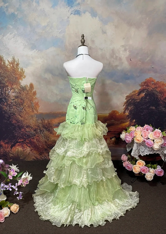 Green Elegant Vintage Fashion Exquisite Floral Beaded Long tulle Floor Length Ball Gown Evening Gown Prom Dress nv4081