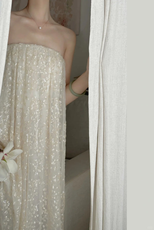 Ivory White Gorgeous Exquisite Beading Long Floor Length Tulle Sequined Ball Gown Evening Dress Birthday Holiday Party Dress nv4070