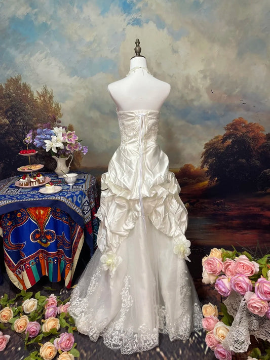Ivory White Gorgeous Fashion Elegant Floral Exquisite Beading lace Long Satin Tulle Ball Gown Evening Gown Wedding Dress nv4063