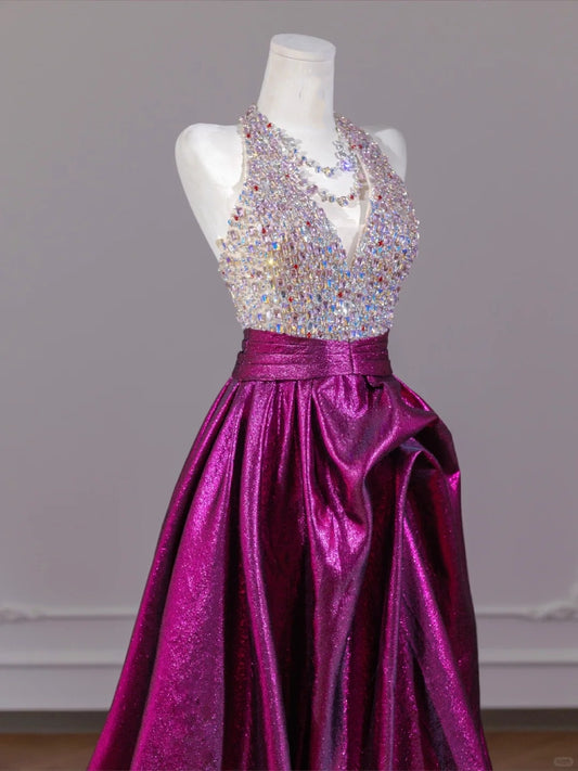 Purple Sparkling Beaded Long Floor-Length Prom Dress nv4967