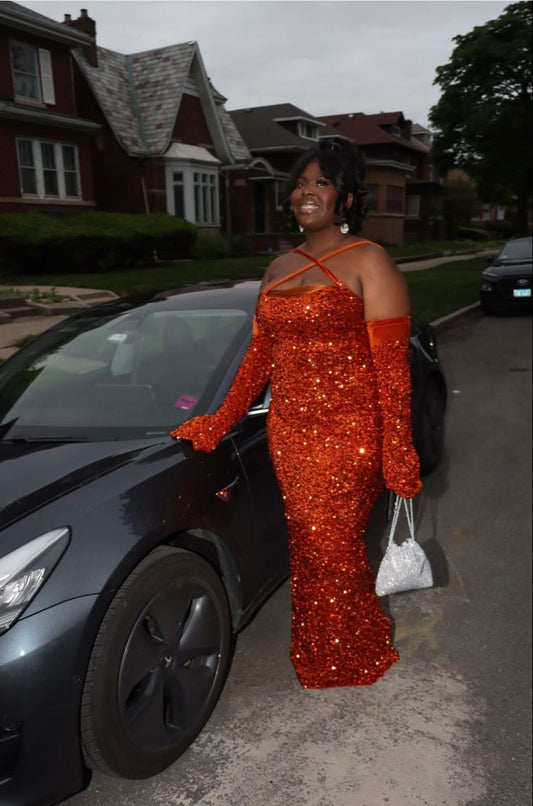 Gorgeous Shiny Orange Cross Strap Tube Mermaid Sequin Long Slim Fit Ball Gown Evening Dress Party Dress nv3239