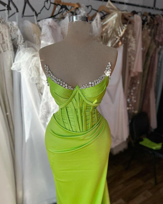 Green Shiny Fashion Elegant Spaghetti Strap Sleeveless Long Satin Floor Length Ball Gown Evening Dress Party Dress nv3720