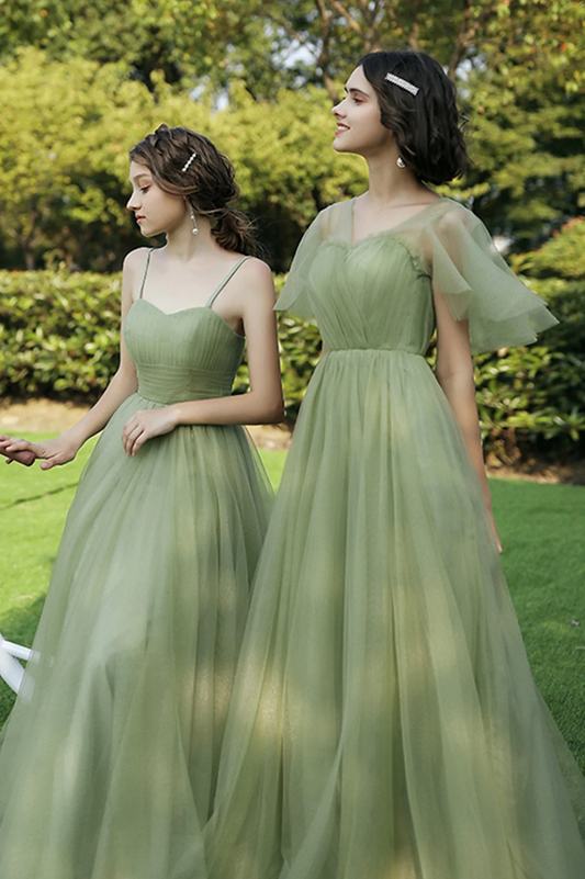 Green Tulle Long Prom Dresses, A-Line Evening Dresses nv553