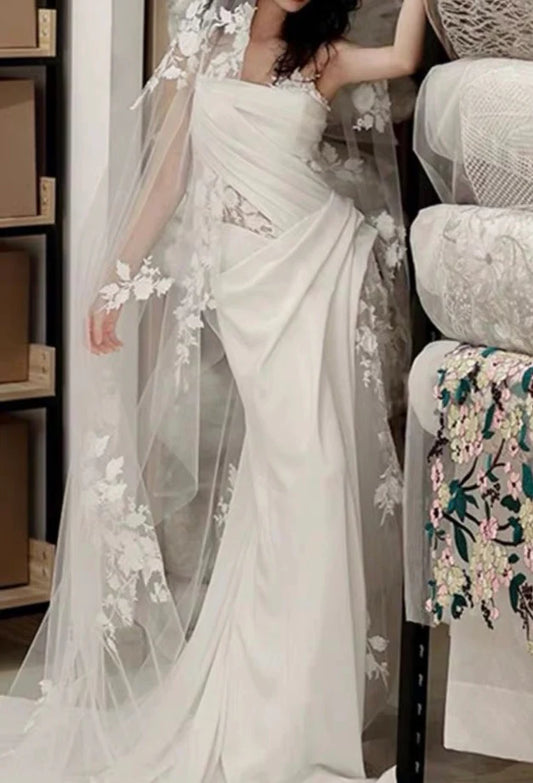Ivory White Elegant Exquisite Long Tulle Mermaid Slim Floor Length Train Ball Gown Evening Gown Party Dress Wedding Dress nv4135