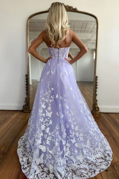 Lilac Strapless Lace Long Prom Dress nv1025