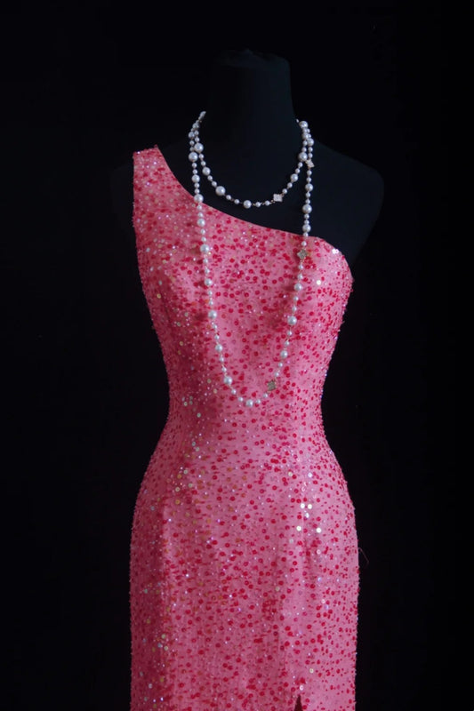 NiceVestidos-- Vintage exquisite floral spaghetti strap sleeveless bright pink long satin backless prom dress evening gown NV5681