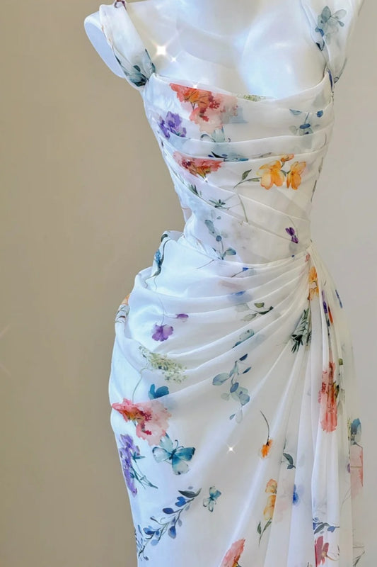 NiceVestidos--Fresh Art Style:Floral Chiffon Waist - Cinched Sleeveless Floor - Length Creative Evening Dress NV5811