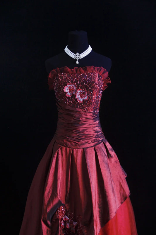 NiceVestidos--Glamorous Embroidered Red Strapless Evening Dress NV5788