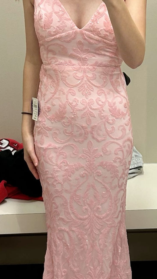 NiceVestidos--Pink Fashion Elegant Floral Long Graduation Dress NV5850