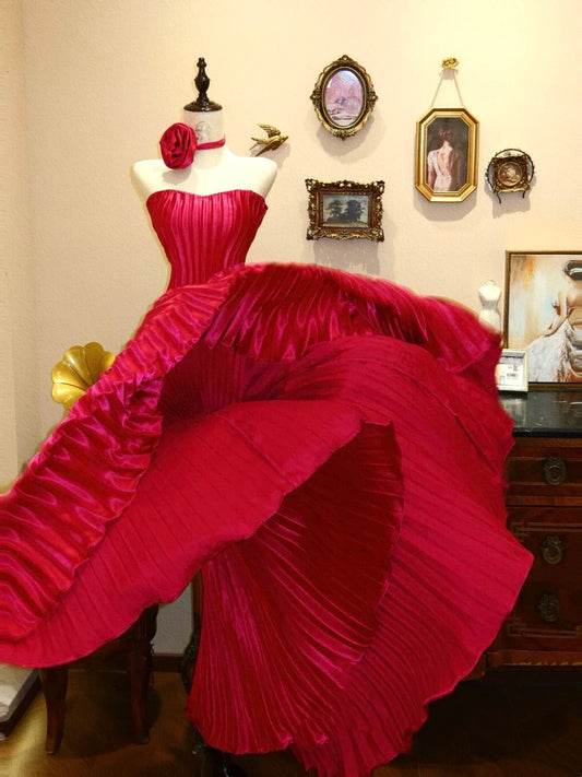 NiceVestidos--Vintage Red Strapless Puff Sleeve High-End Gown, Ball Gown Style Luxury Long Dress for Evening Party & Ball NV5888