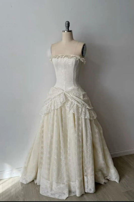 NiceVestidos--Vintage Strapless Lace High-End Wedding Dress, Court Style Corset 3D Floral Embellished Ball Gown for Retro Wedding NV5891