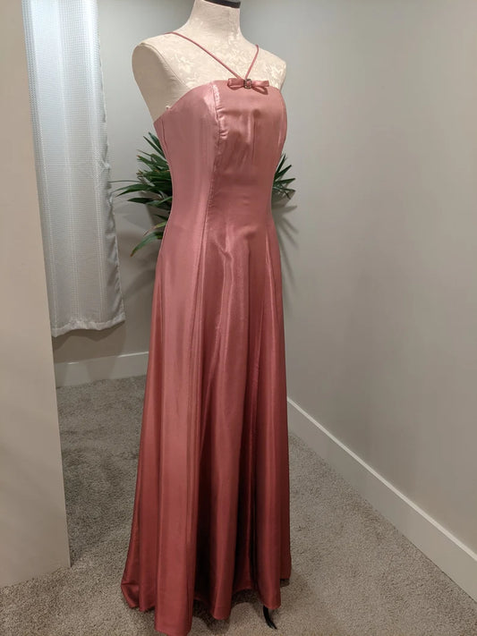 Pink Fashion Simple Elegant Bowknot Long Satin Ball Gown Evening Dress Party Dress Prom Dress nv3751