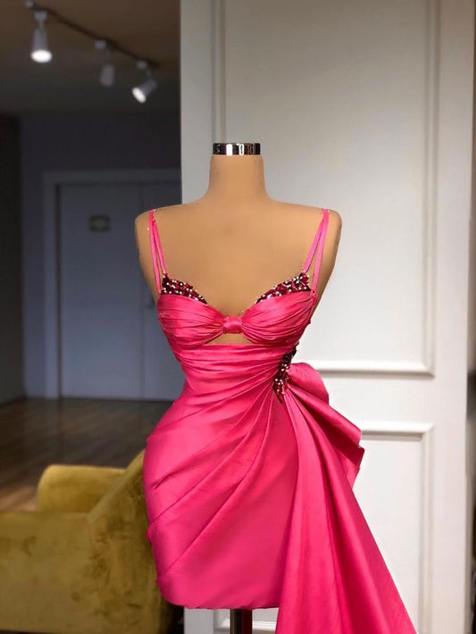 Pink Fashion Sweet Bow Short satin Homecoming Dress Prom Dress Birthday Dress nv4512