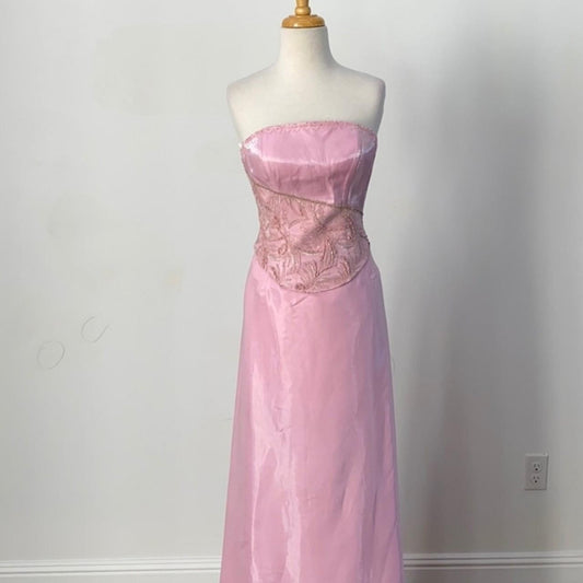 Pink Stunning Fairy Tie-Up Corset Corset Floral Beaded Long Satin Evening Dress Party Dress 2 Piece Corset Prom Dress nv3746