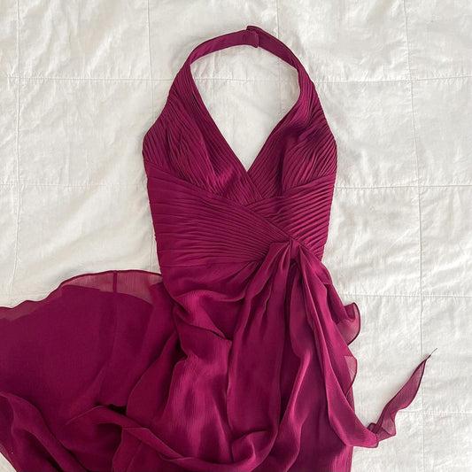 Plum Purple Fashion V Neck Elegant Pleated Long Chiffon Ball Gown Evening Dress Party Dress nv3662