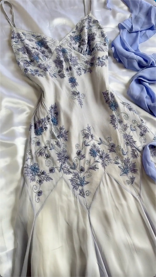 Purple Delicate Floral Beading Shiny Spaghetti Straps Elegant Fashion A-Line Long Tulle Ball Gown Evening Dress Party Dress Prom Dress nv3799