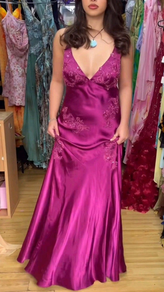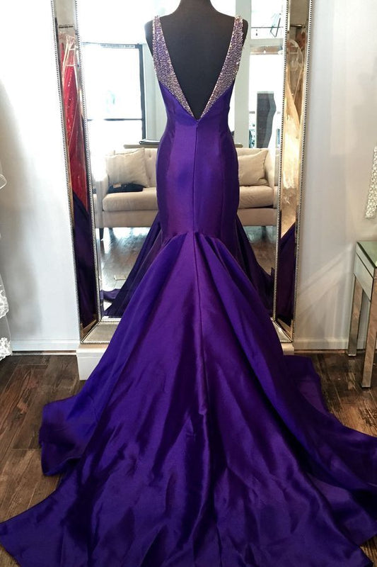 Purple Elegant Backless Long Satin Prom Dress nv4964