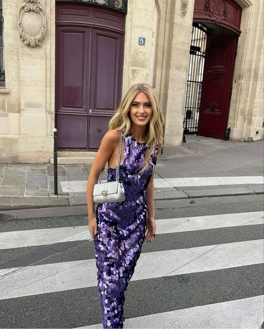 Purple Shiny Elegant Charming Mermaid Slim Fit Sequin Long Sleeveless Ball Gown Evening Dress Party Dress nv2559