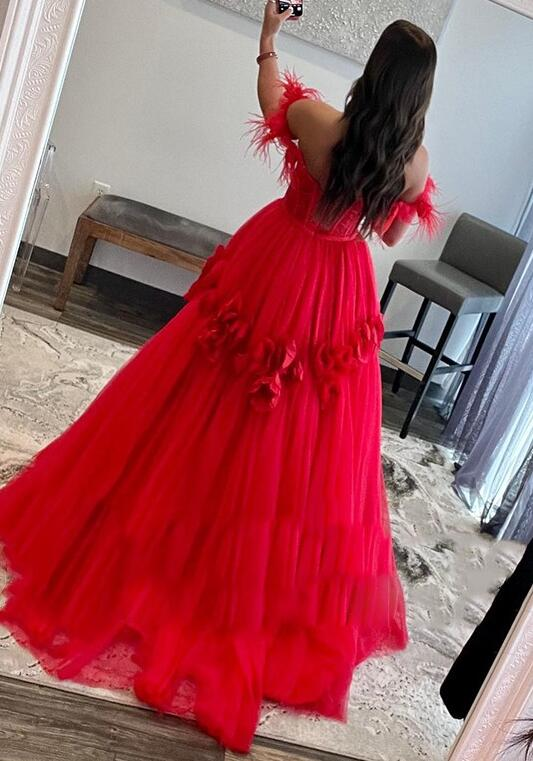 Red A-line Simple Elegant Tulle Long Ball Gown Evening Dress nv3005