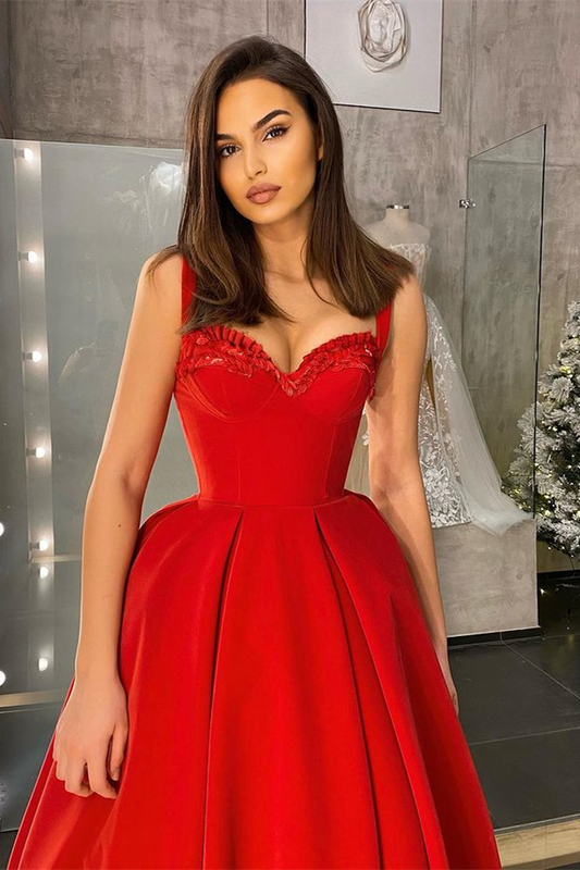 Red Prom Dress Tea-Length Sweetheart With Sequins Straps nv570