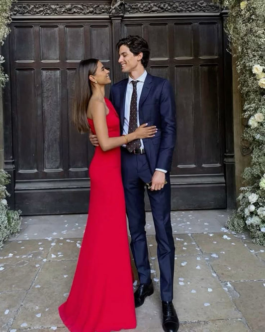 Red simple and elegant mermaid slim strapless long sleeveless ball gown evening dress nv1807