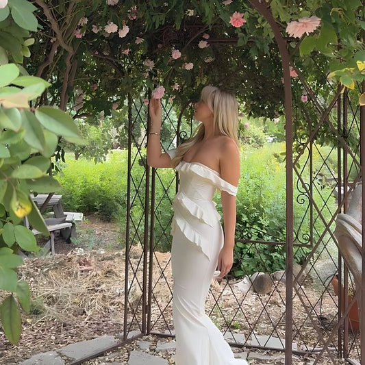 White fashion tube top long ruffled elegant front slit ball gown evening dress nv3302