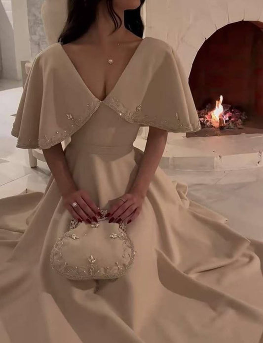 White/Green/Black simple elegant cape style embroidered long Prom Dress evening dress party dress nv2421