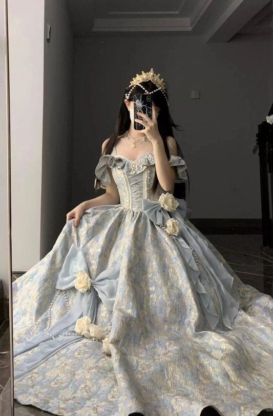 Blue 3D Rose Flower Adult Ceremony Dress Long Ball Gown Evening Gown nv2840
