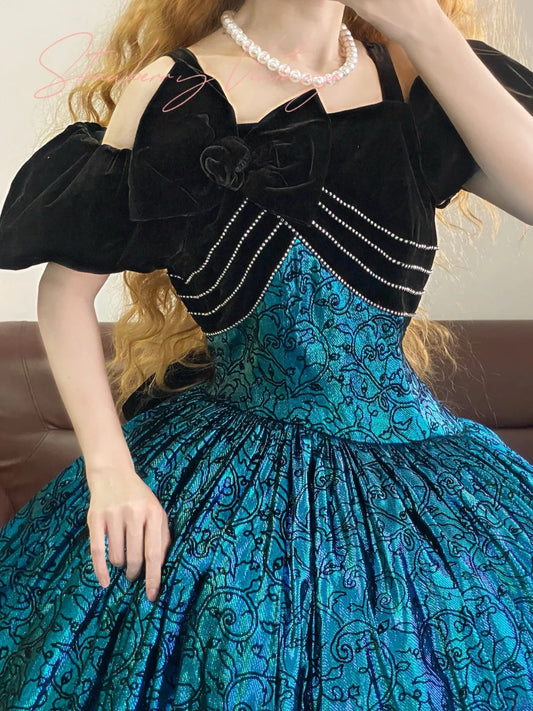 Blue Floral Vintage Elegant Long Princess Tulle Ball Gown nv5026