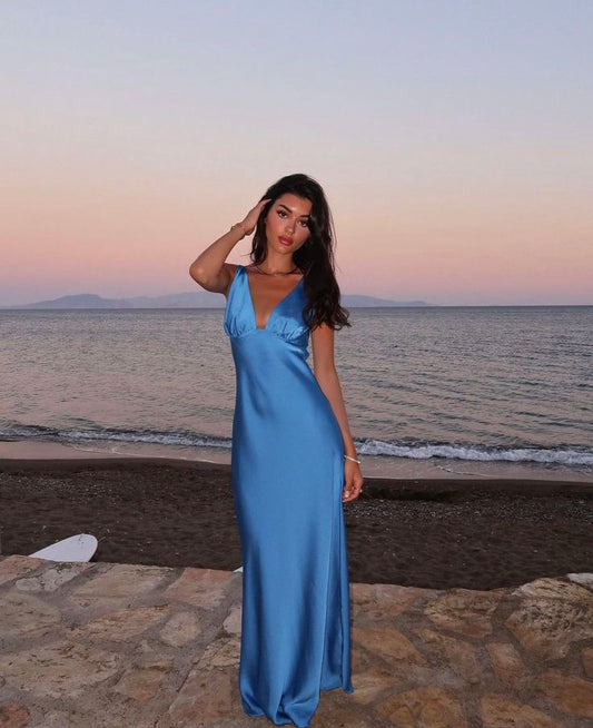 Blue simple fashion elegant V-neck sling long satin ball gown, evening dress, party dress nv3688