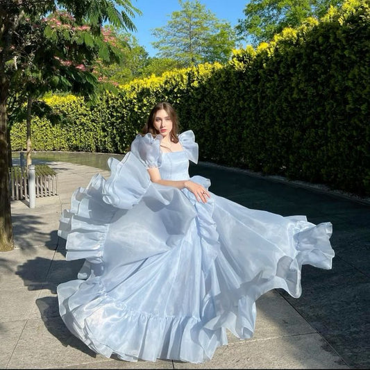 Blue sweet and elegant A-line ruffled long tulle princess ball gown evening gown graduation gown nv3284