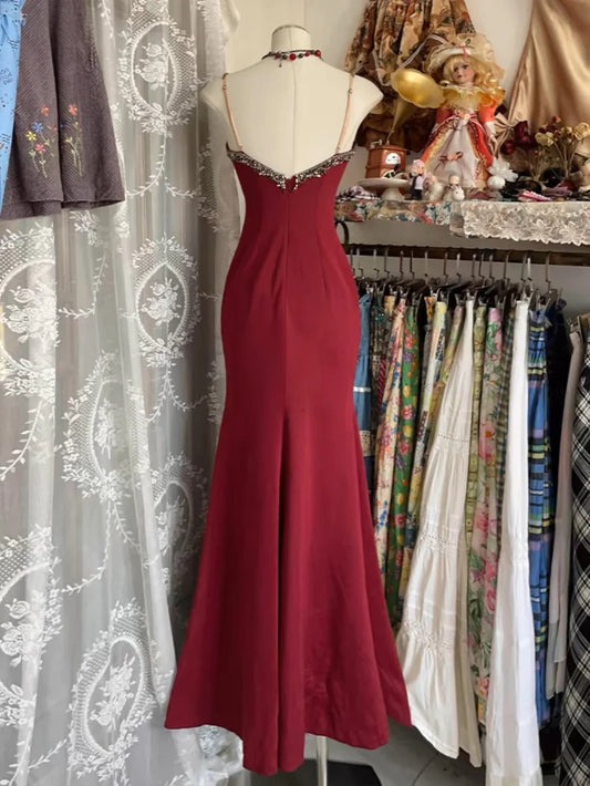 Burgundy Elegant Fashion Long Velvet Graduation Dress Mermaid Strap Ball Gown Birthday Party Dress nv3937